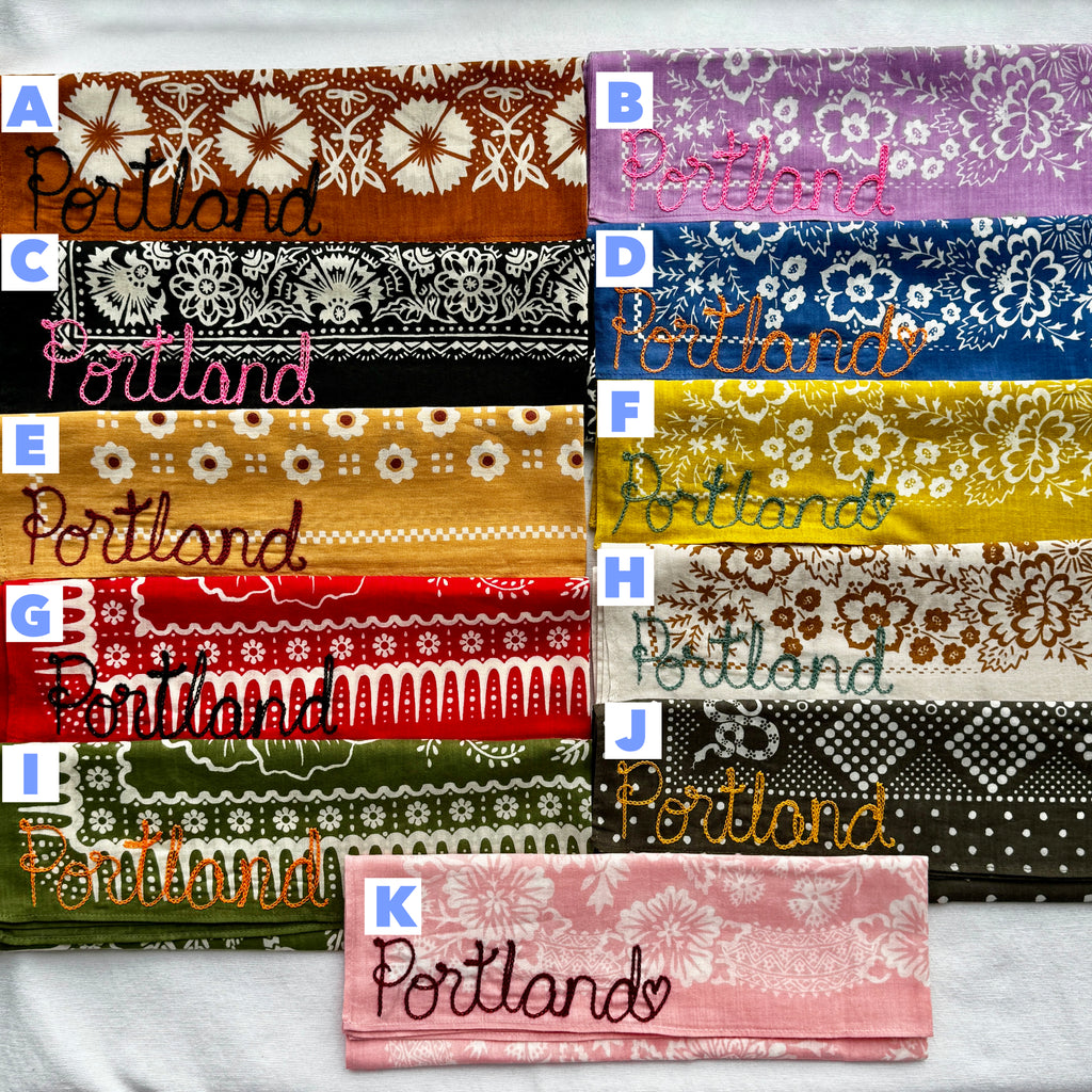 Let us stitch a word or phrase on any bandana you choose! A nickname, inside joke, hometown pride, or team spirit are just a few ideas.