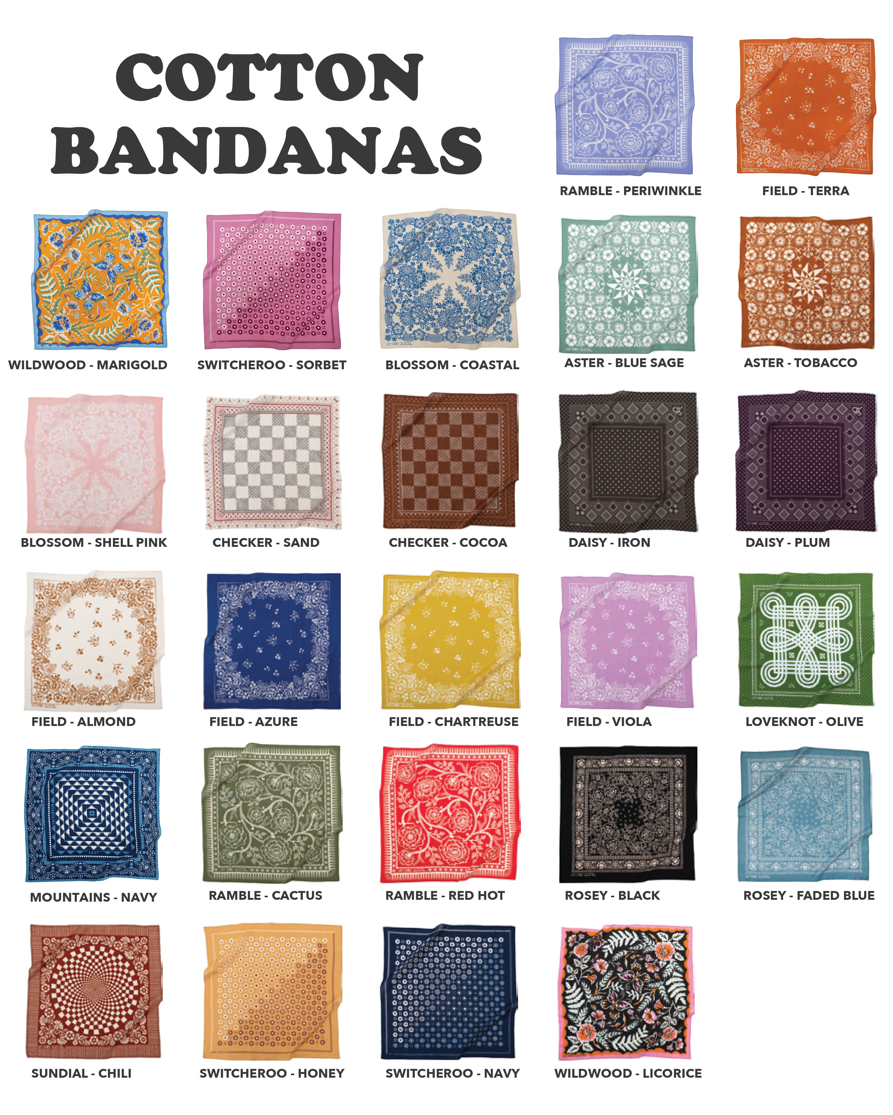 The most difficult decision with these fabulous bandannas is which color/design combo to purchase. The solution is to buy a bundle! You simply cannot go wrong with these soft squares in a variety of lovely hues and patterns.
