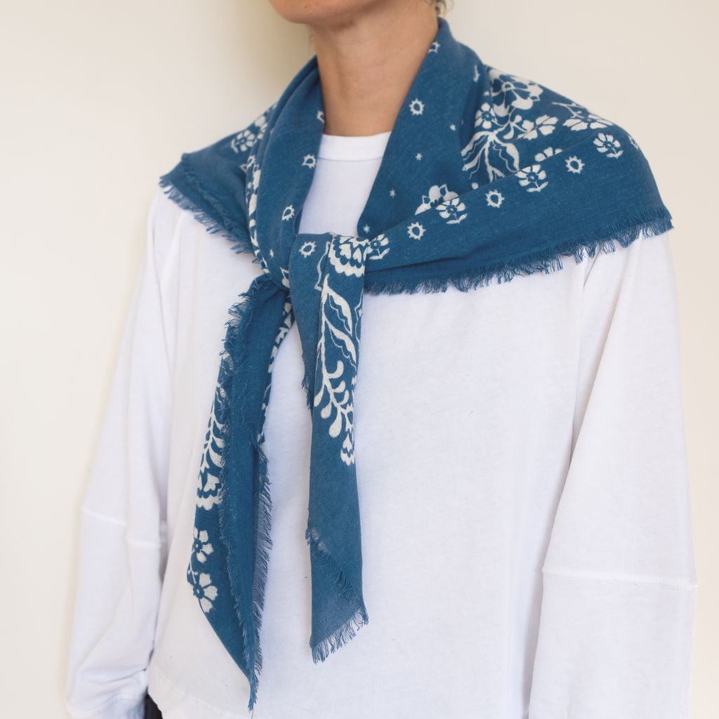 Sometimes referred to as “raw-silk”, silk noil yarns are spun from shorter fibers leftover from the spinning and manufacture of other silk fabrics. Silk bandanas make a great travel companion, keeping you comfortable in both hot and cold climates. Silk noil has a varied, nubby texture and matte surface that somewhat resembles a handwoven cotton. The unique texture can be best described as 'cozy'. They also work great tied up in your hair, as the nubby silk stays put and doesn't slip. The more you wear your bandana, the softer it will become.