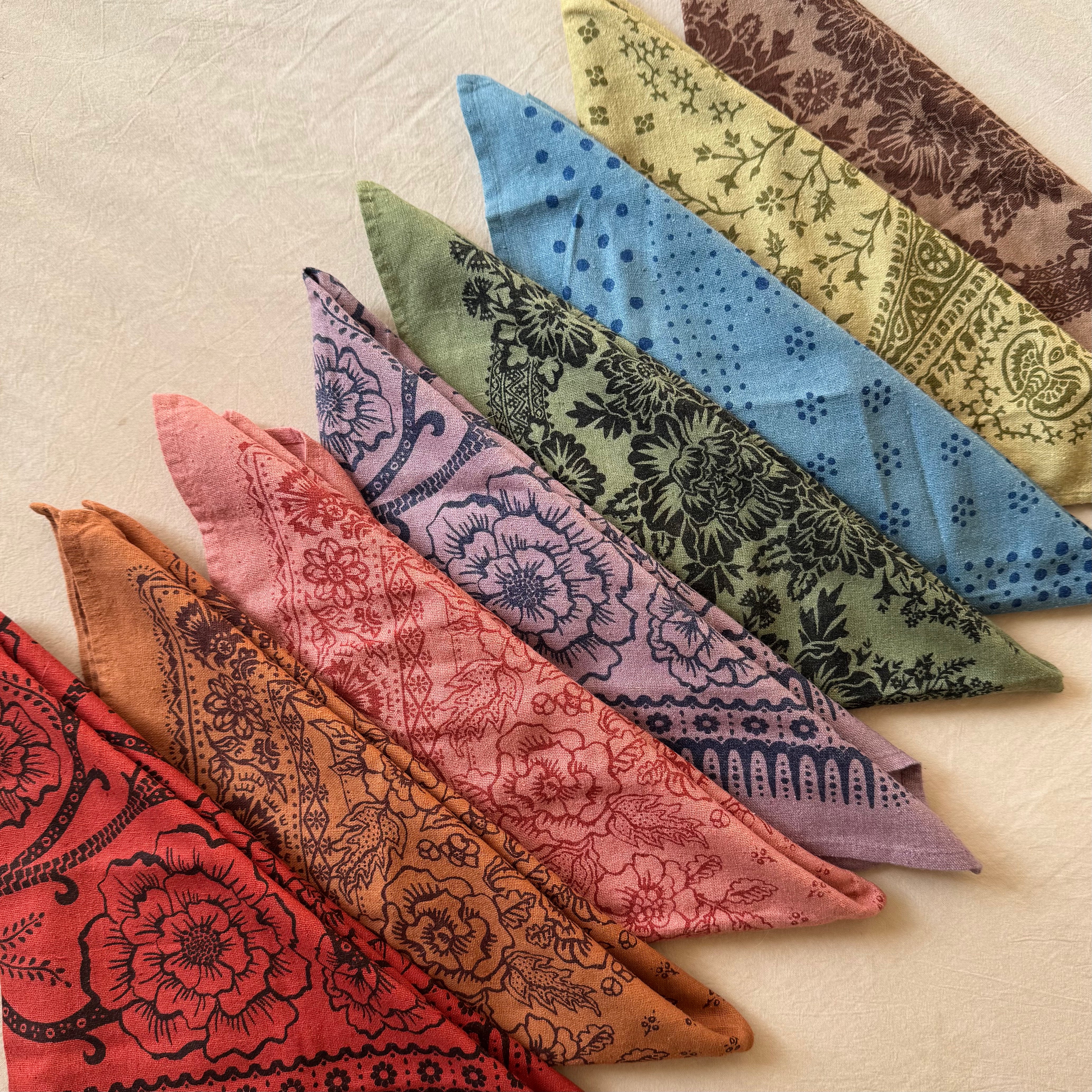 These bandannas are amazing. The colors are gorgeous, the prints are lovely, & they wash beautifully resulting in a soft texture. My only complaint is that the site seemed to be technically limited so I could only order one unique combo per order, else I would have bought more.
