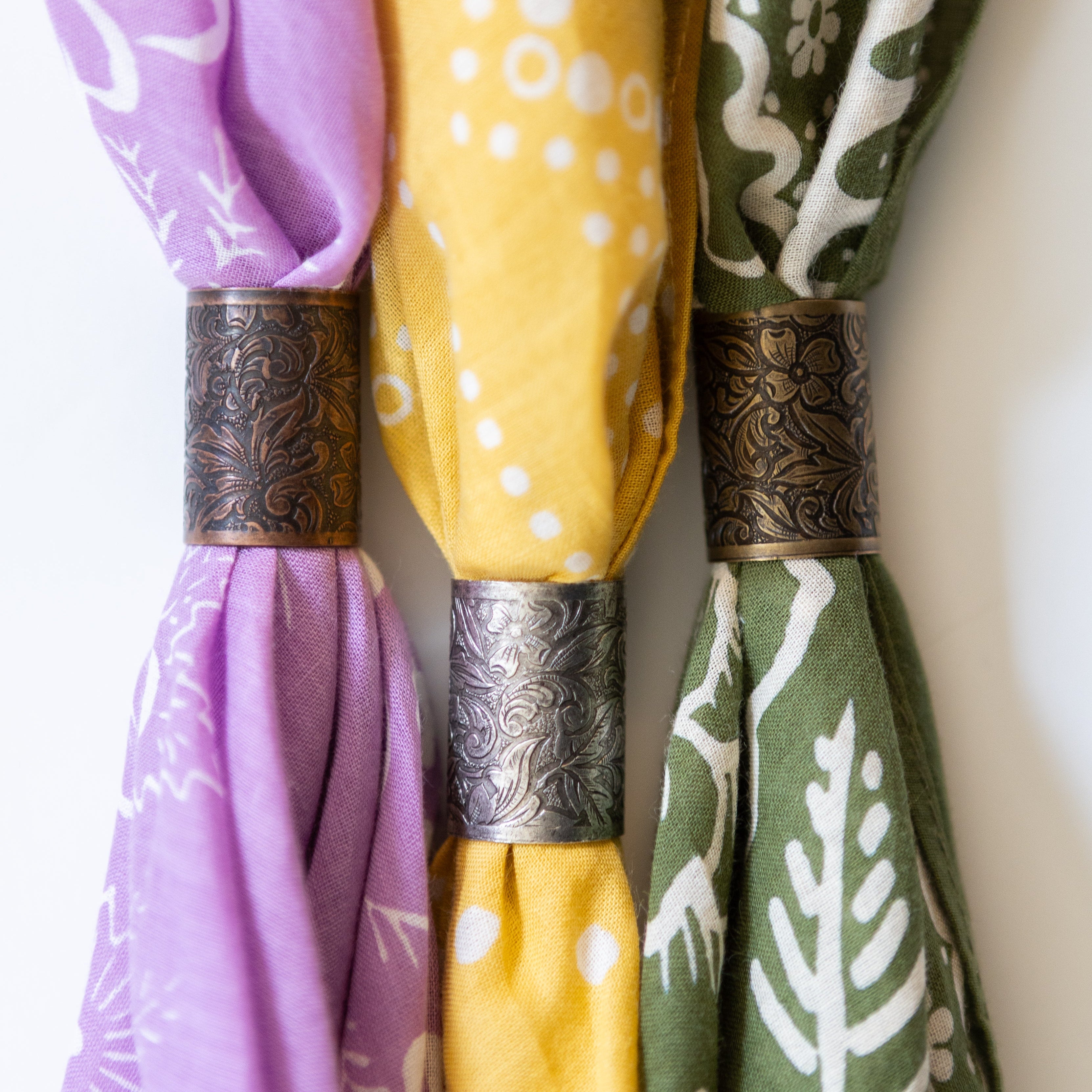 The engraved dogwood detail is delicate and goes well with all the bandannas I have, especially the rosey & ramble patterns. It’s a great alternative way to wear these bandannas! Very happy with my purchase, and I’ll remember this item for gifts in future. Would make a great stocking stuffer too.