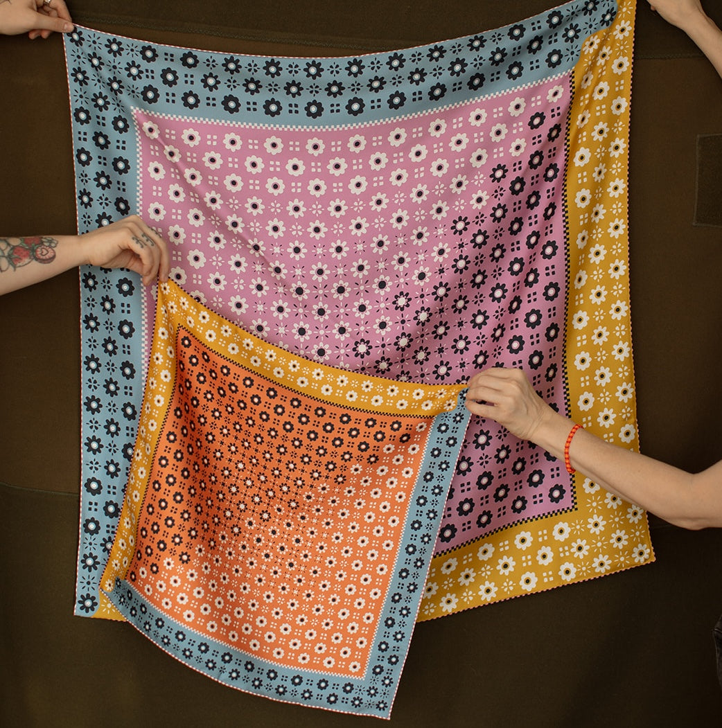 Our 'twofer' scarves feature double-sided printing with a distinct color scheme on each side. It's like getting two scarves in one!