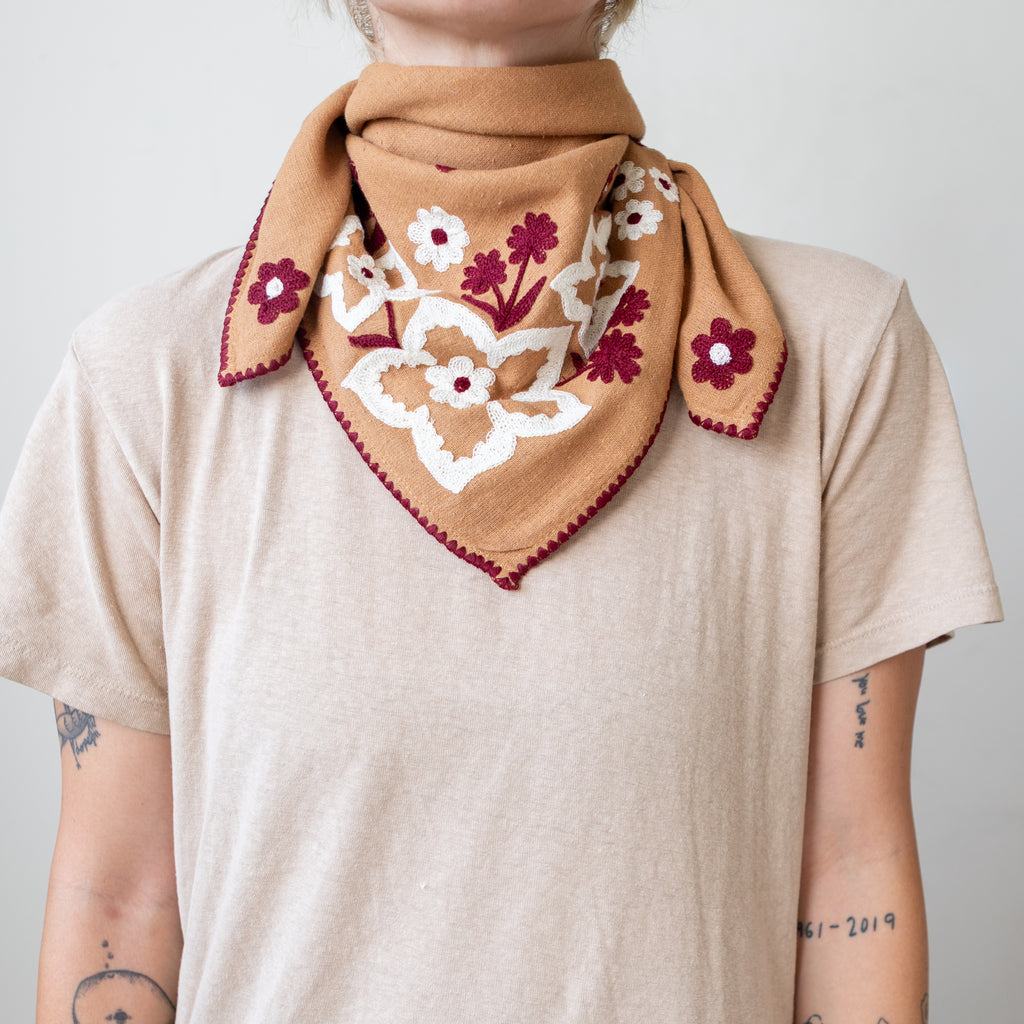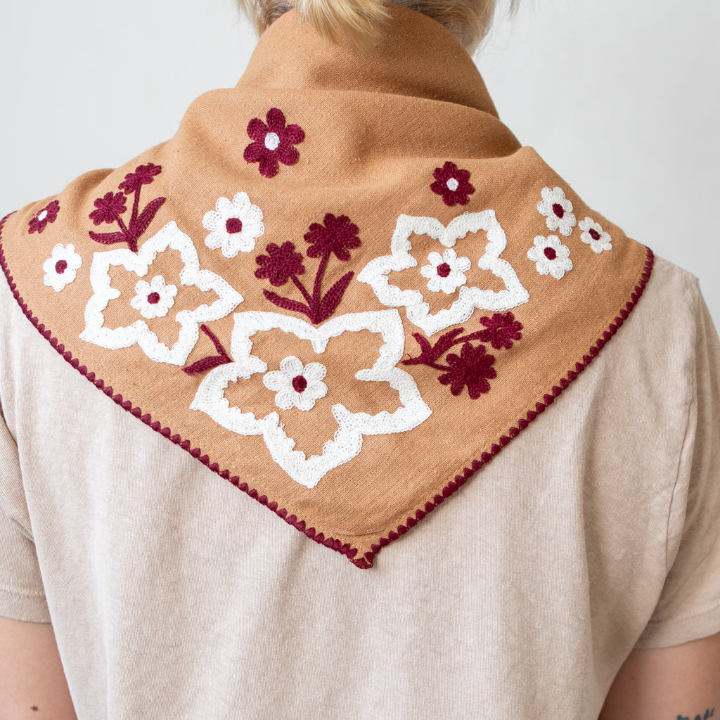 Embroidered Silk Noil Bandana | Caramel Field (PRE-ORDER FEBRUARY DELIVERY)