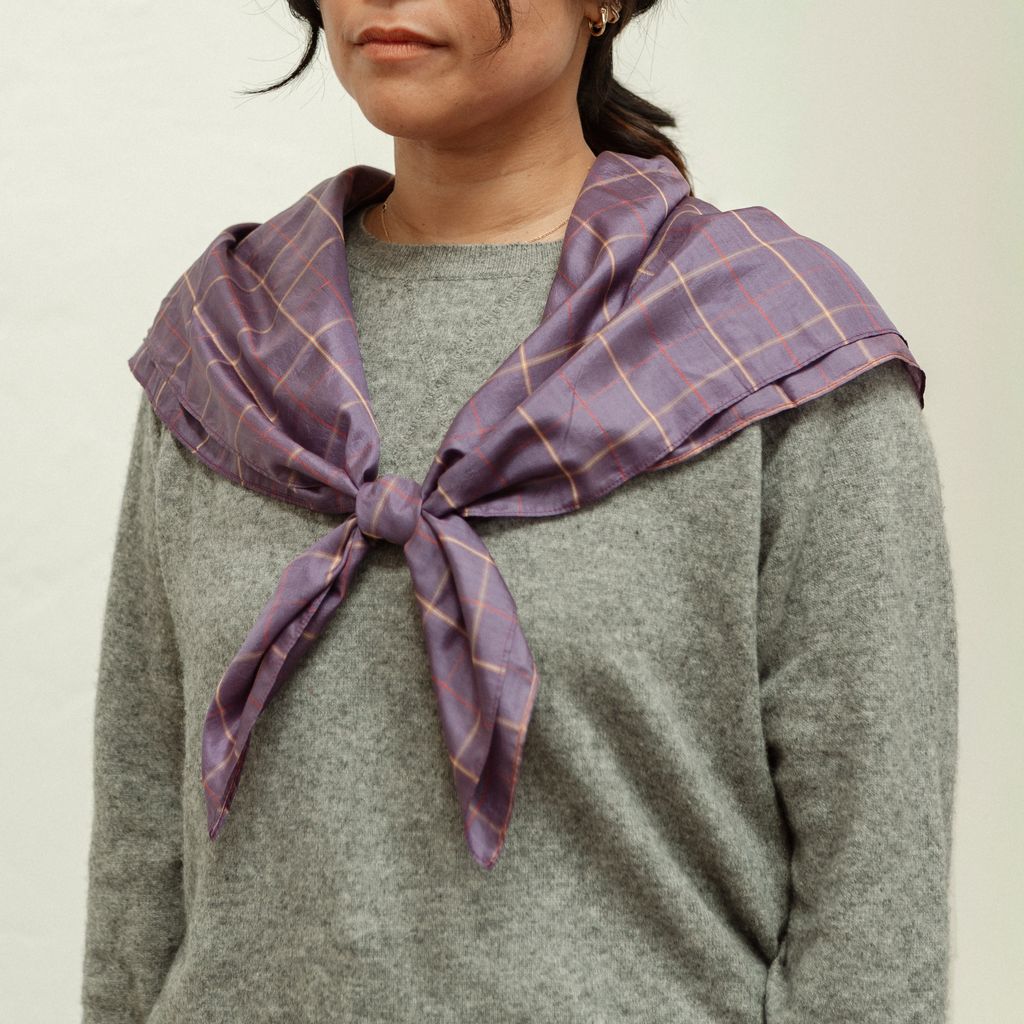 Strut the range in style with Odel Handwoven Cowboy Scarf! A classy windowpane withhoney and rosey-red stripes on a warm plum purple ground. The featherweight silk has a subtle, lustrous shine and a beautifully 'lived-in' texture that feels great against the skin.