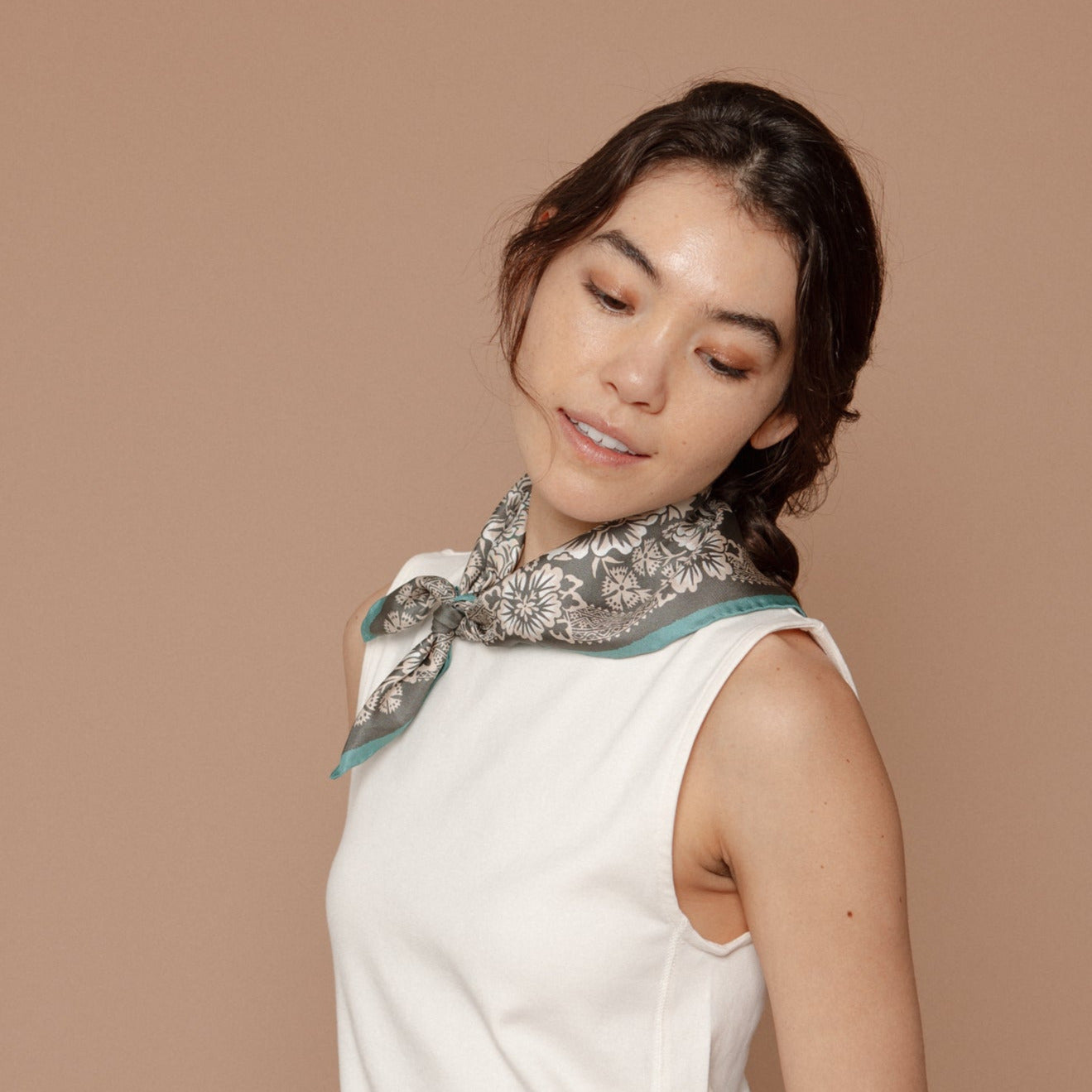 The small 19" size is a petite neckerchief that can be styled in all the same ways as our signature cotton and silk bandanas. It makes a great pop of color to go with your basics.