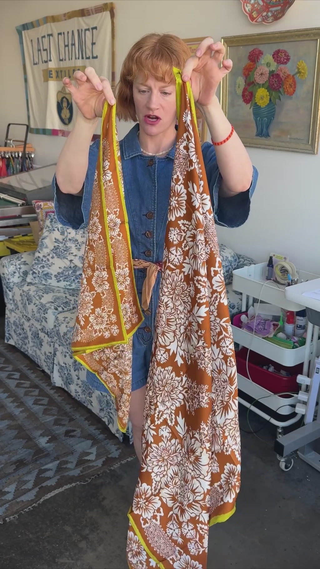 The large 35" size can be wrapped twice around the neck and provides both warmth and glamor.  Dress it down like a cowboy's wild rag, or dress it up like a chic Parisian!
