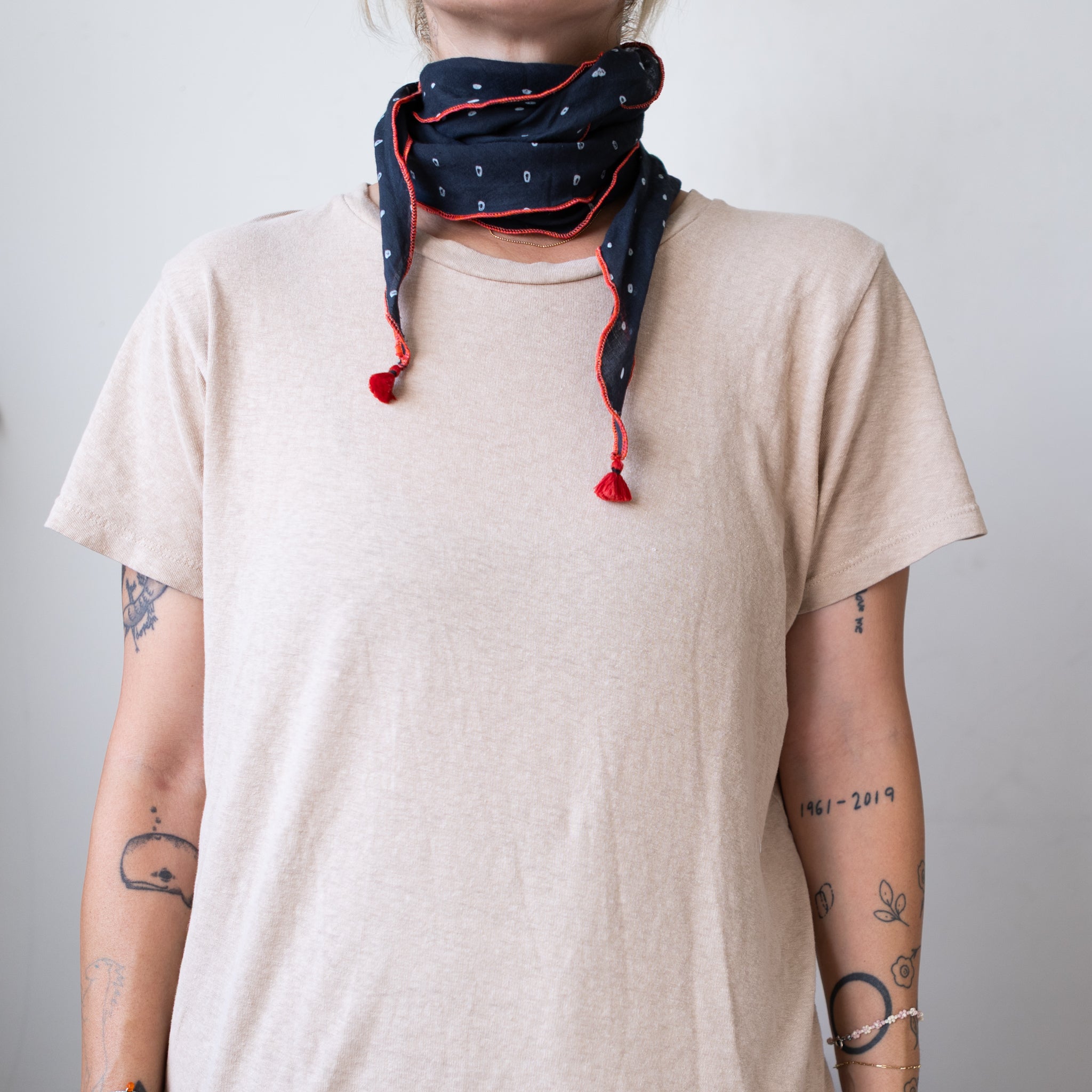 A diamond-shaped scarf that is as versatile as it is storied. Designed and handcrafted in India by heritage artisans using an ancient resist-dye technique called Bandhani. AKA the OG POLKA DOT! We cut these into a unique diamond shape, making it easy to style as a hairband, belt, chic neckerchief, or flowing scarf.